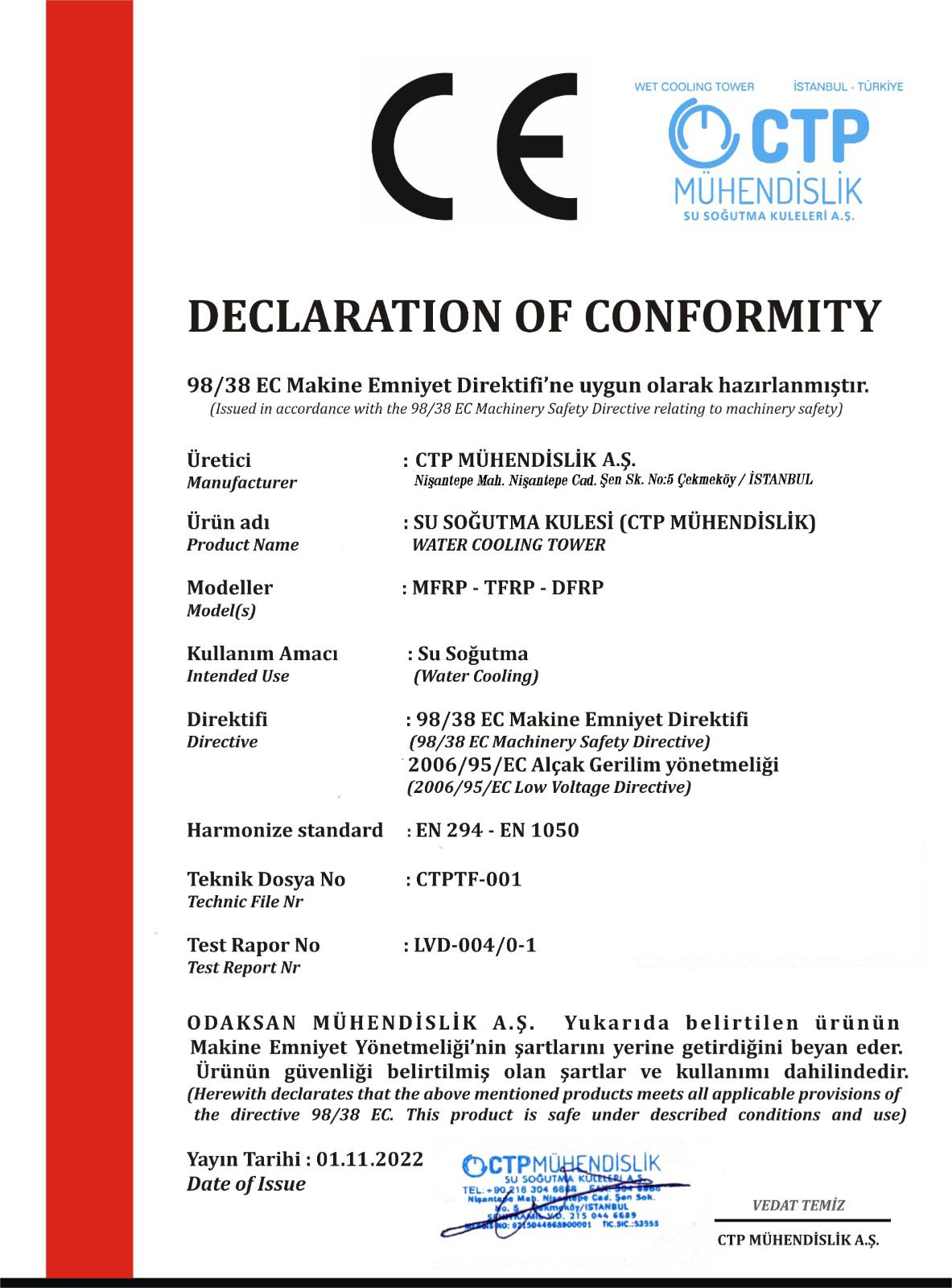 Все комплектующие градирней производятся в соответствии с турецкими стандартами качества.