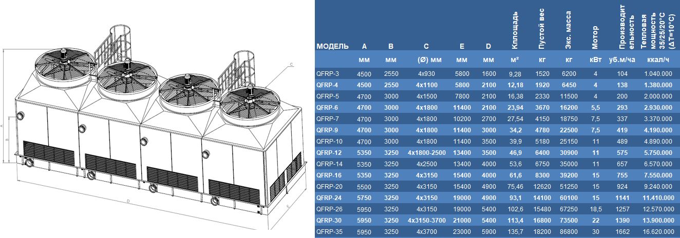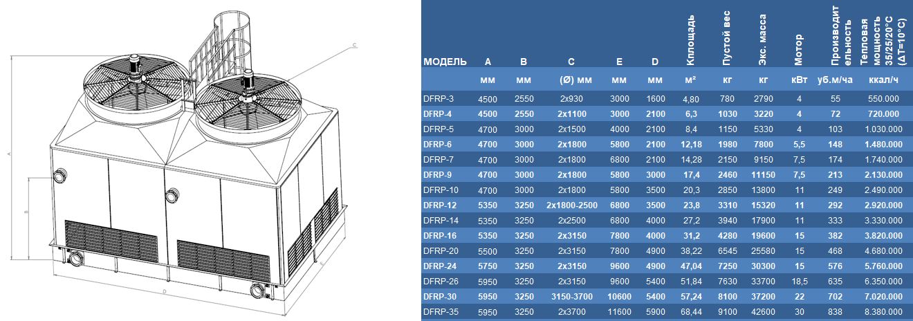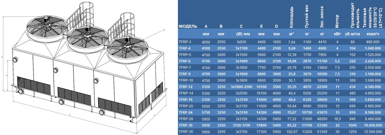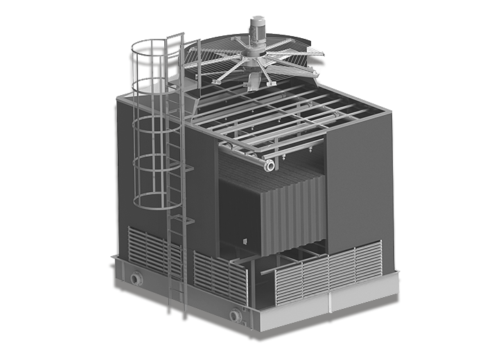 Вентилятор Обшивка Водораспределительная система Теплообменник Воздухорегулирующее устройство Водосборный бассейн Лестница