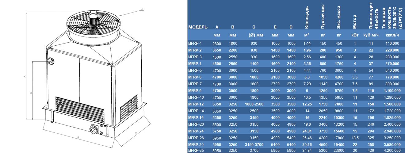 Компактные градирни изготавливаются из одной или нескольких частей в зависимости от размера пятна застройки (установки). В данной конструкции невозможно использовать более одной группы вентиляторов или двигателей для одной секции. Несмотря на то, что односекционная структура данных градирней схожа с вентиляторными радиальными градирнями, между ними имеются существенные различия в производительности. В зависимости от требований Заказчика возможно изготовить спаренные или двухсекционные градирни. Мощность данных градирен вдвое больше, чем мощность односекционных. Размеры секций должны быть одинаковыми. Благодаря тому, что секции могут работать независимо друг от друга, их можно с легкостью эксплуатировать на половину мощности. Такой вариант использования обуславливает популярность данного типа градирен среди небольших частных производств, предприятий легкой промышленности или предприятий, где потребности в охлажденной технологической воде не превышают расходов 1000 м3/ч.