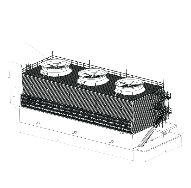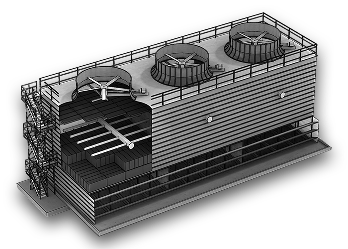 Вентиляторные градирни относятся к классу испарительных градирен, в которых передача тепла от воды воздуху осуществляется в основном за счет испарения, а для создания необходимой тяги используется вентилятор. В зависимости от типа используемого вентилятора градирни можно разделить на 2 категории: с осевым вентилятором и радиальным вентилятором.