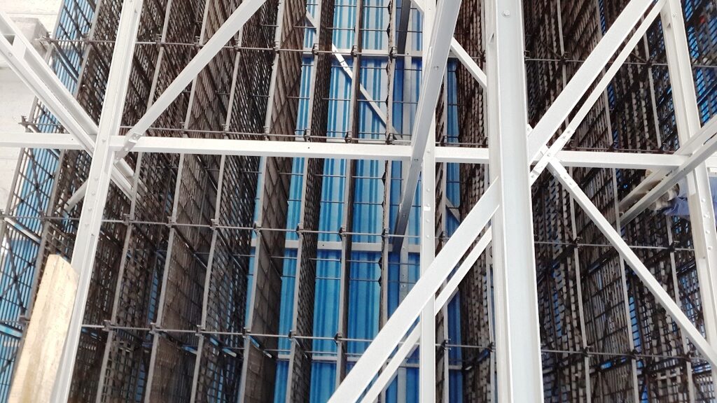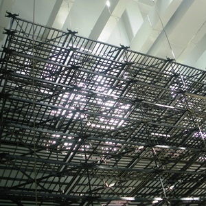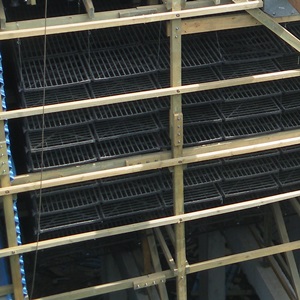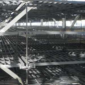 При помощи специальных паучков собираются решетки оросителей. На отрезки проволоки из нержавеющей стали, которые висят вертикально, крепятся паучки. Во время ремонта и реконструкции для замены решеток, не повреждая другие элементы, легко снимаются решетки оросителей.